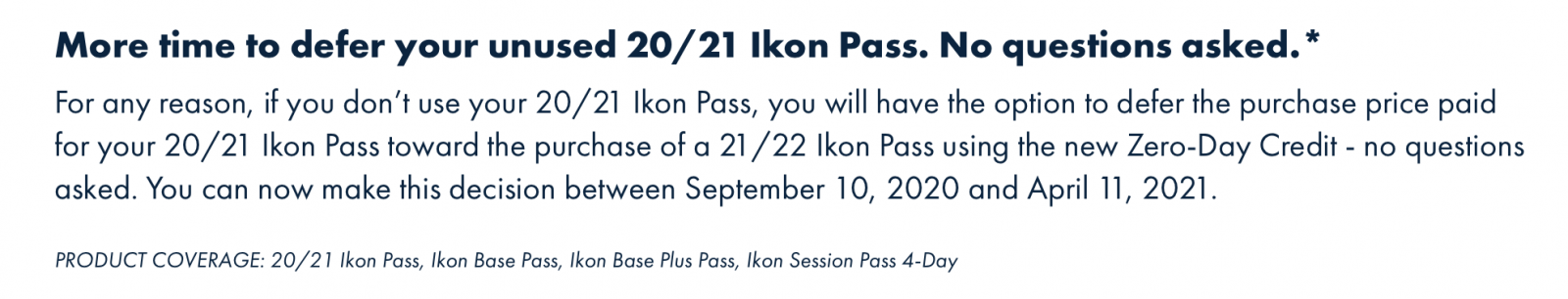 If there are multiple passes in one account, each pass must select to defer. . 08/12/2020 · any 20/21 ikon pass purchased can be deferred to the 2021/22 season.